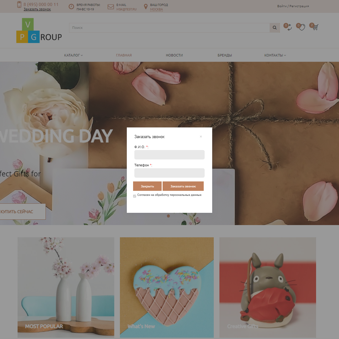 - Функцию "Заказать звонок".