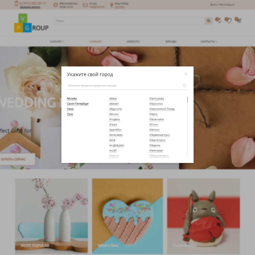 Мультирегиональность: Для работы данной функции необходимо приобрести модуль Улучшенный выбор местоположения.