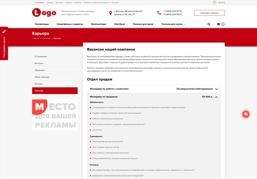 - Адаптация под мобильные телефоны, планшетные устройства, ноутбук, компьютер.