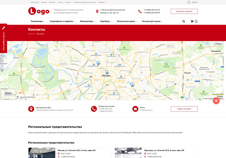 - Выбор вашего любимого цвета для всей гаммы сайта.