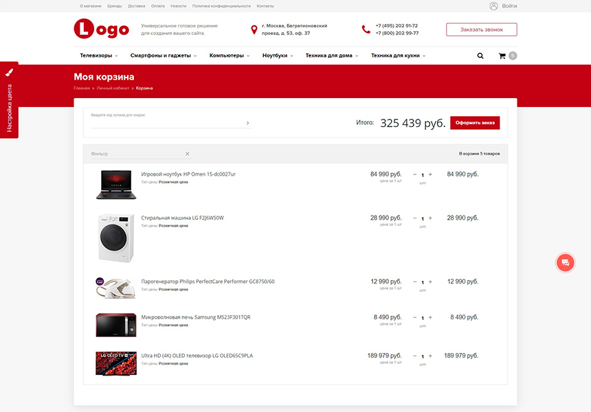 - Каталог - содержит в себе многоуровневую структуру каталога с умным фильтром.