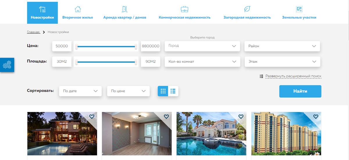 - встроенный фильтр на сайте позволяет быстро найти нужный объект