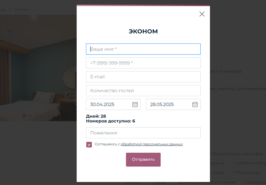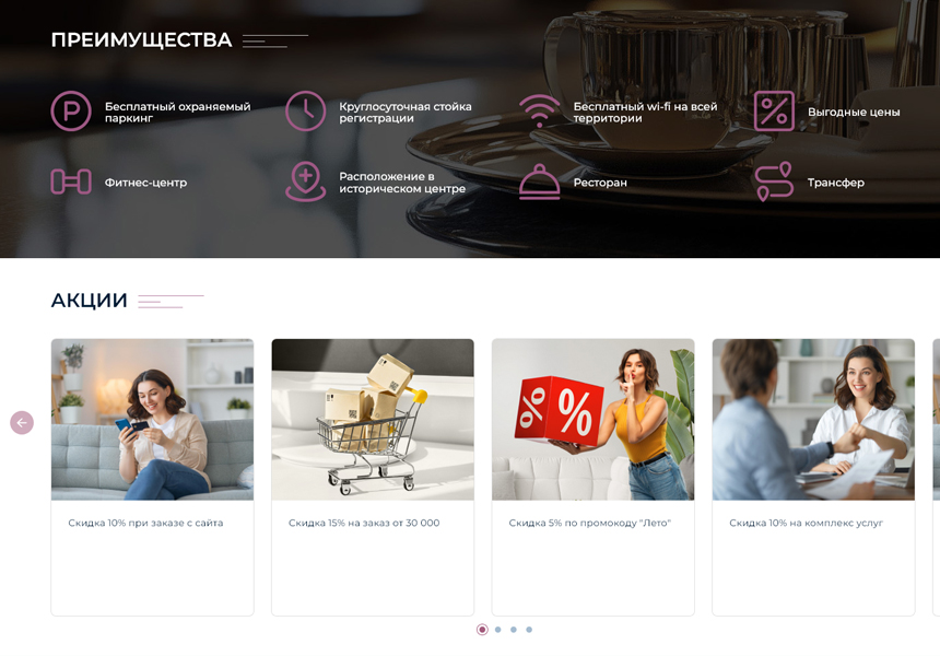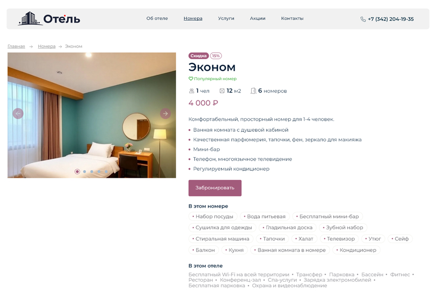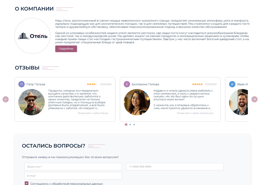 Сайт для гостинцы, отеля, хостела с современным и адаптивным дизайном.