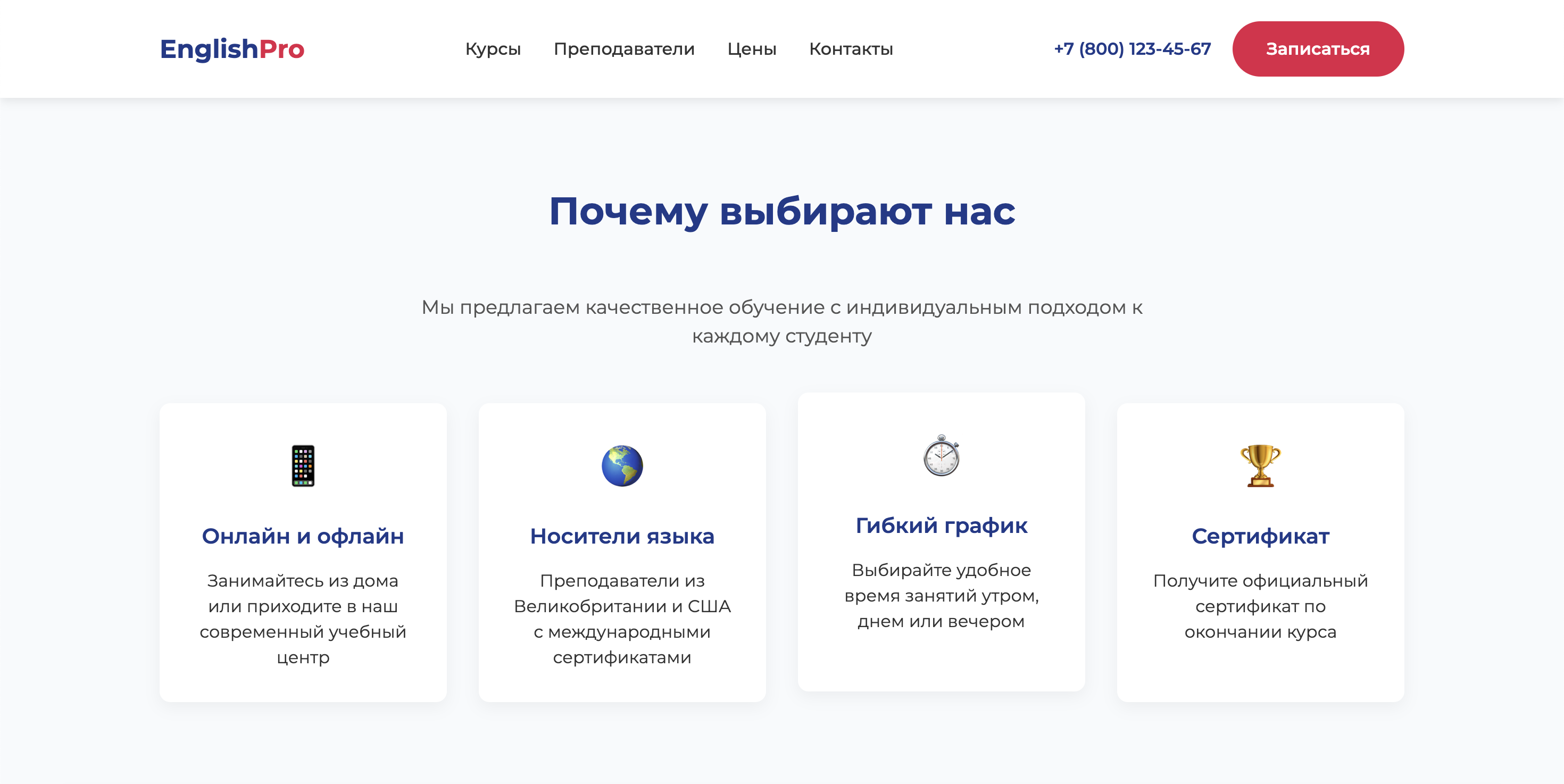 Готовое решение "EnglishPro" – профессиональный лендинг для языковых курсов под ключ