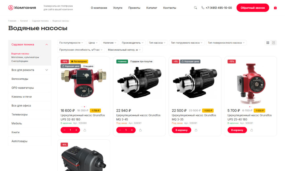 - Каталог товаров с умным фильтром (для всех редакций, начиная с версии Старт)