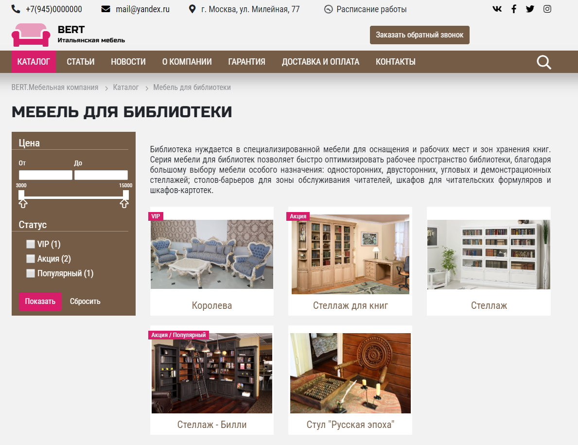 - Каталог с фильтром.