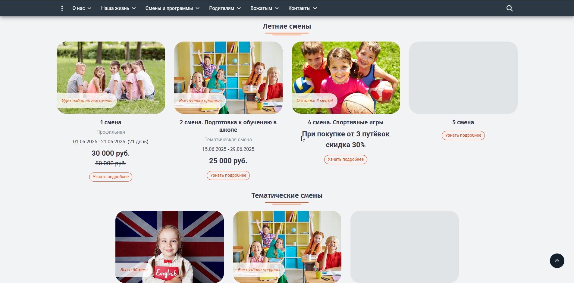 SIMAI-SF4: Сайт детского оздоровительного лагеря – адаптивный с версией для слабовидящих