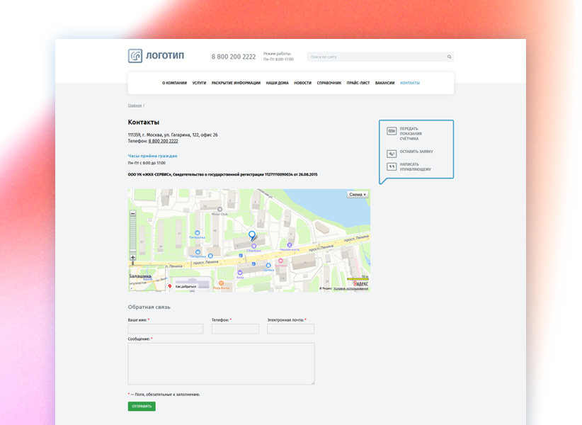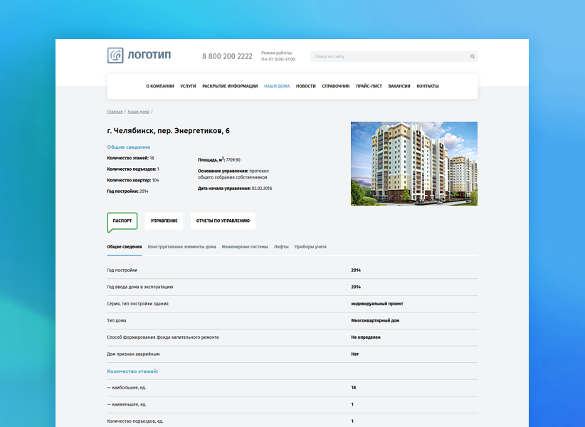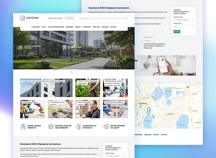 Адаптивный и лаконичный шаблон для сайта управляющей компании в сфере ЖКХ.