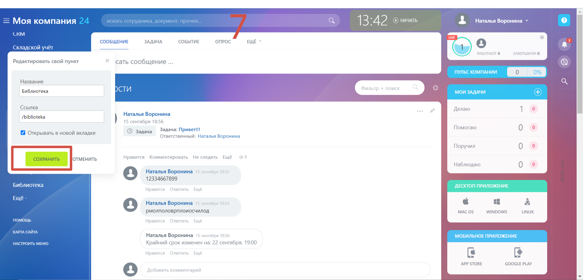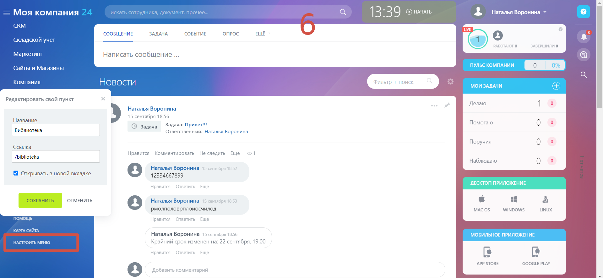11. После этого у вас появится пункт меню «Библиотека» - см. скриншот 8.
