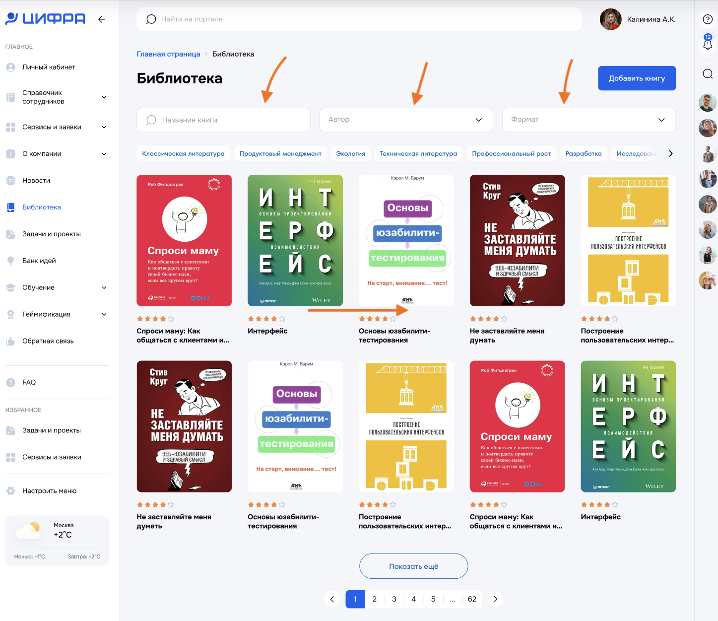 В Библиотеке вы можете фильтровать книги по нужному параметру.Пользователи, у которых есть доступ на добавление книг, могут сделать это прямо на сайте в разделе Библиотека. В настройках добавления книги необходимо указать название книги, тип (электронная или бумажная), автора, возрастные ограничения и т.д., затем нажать «Сохранить».