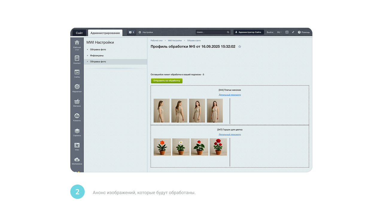 Для обработки фото через модуль необходимо дополнительно покупать «кредиты»
