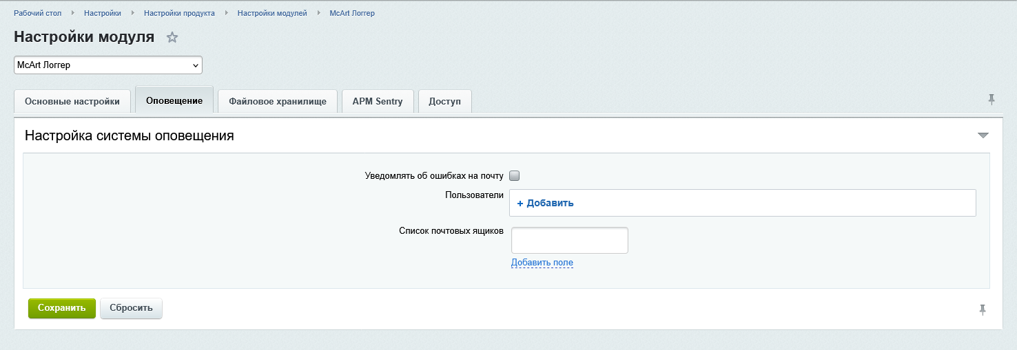 - APM Sentry: Модуль интегрированный с сервисом Sentry для централизованного сбора и анализа ошибок.