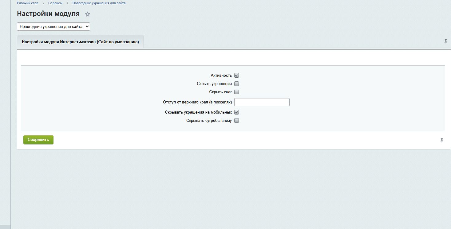 2. Активировать. Установленный модуль находится в Сервисах -> Новогодние украшения для сайта