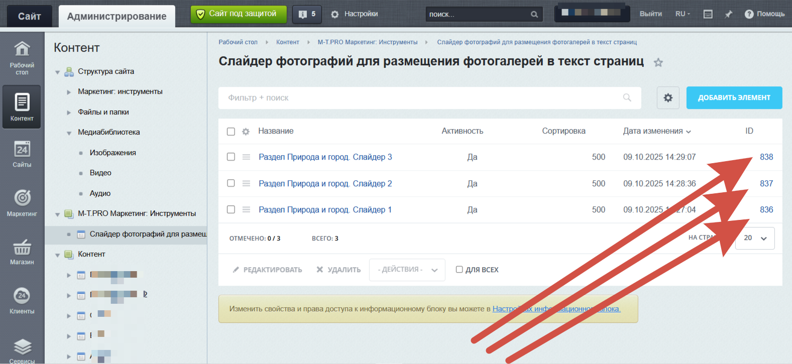 4. Советуем для скорости работы с модулем сразу запомнить ID инфоблока.