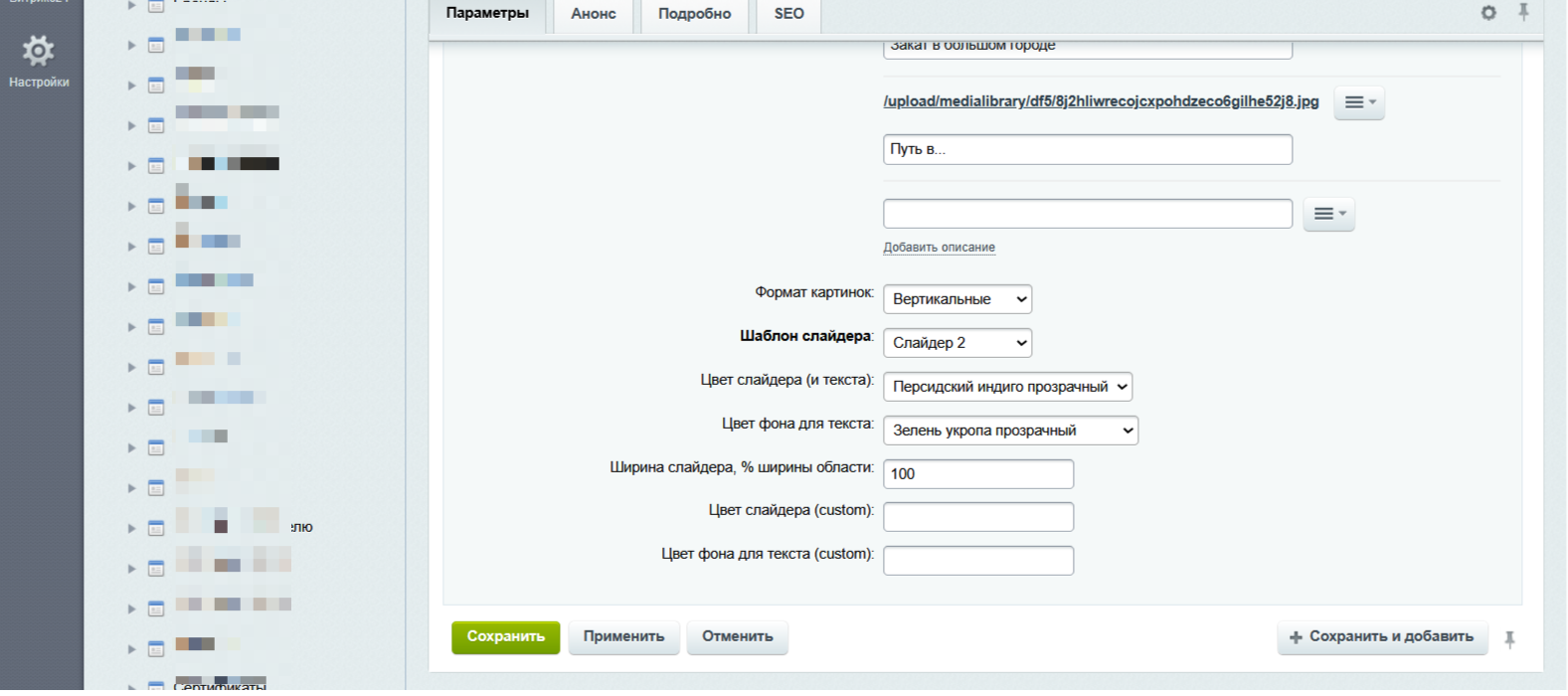 Совет №2: Мы советуем не смешивать горизонтальные и вертикальные фотографии в 1 слайдере. Это и выглядит не очень красиво. Отдельно - вертикальные, отдельно - горизонтальные. Соответствующая настройка есть.