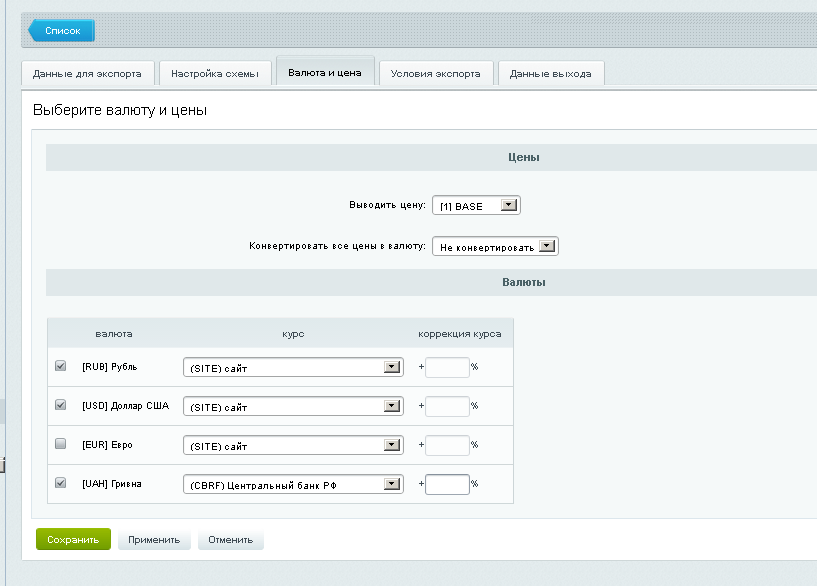 - возможность детализации настройки выгрузки до конечных подразделов каталога