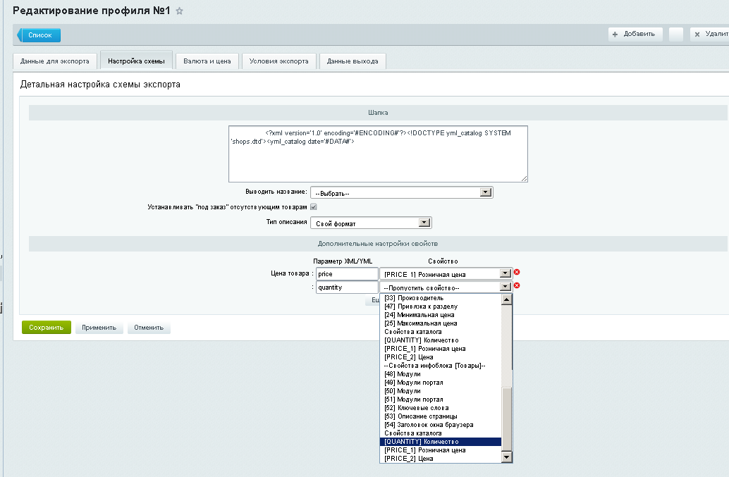 ВНИМАНИЕ! При изменении настроек «Инфоблок для экспорта», «Использовать SKU» - данные на вкладке «Условия экспорта», «Настройка схемы» сбрасываются! Основные инструкции по настройке модуля описаны на вкладке техподдержка http://screencast.com/t/6syWxRik2a обратите внимание что в видео, плейлист, а не одно видео - http://screencast.com/t/9xJ4A0ni