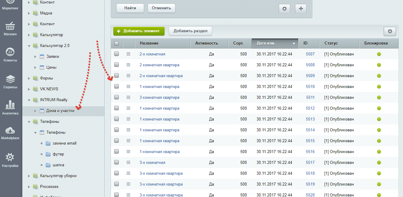 Возможно выгрузить из из CRM INTRUM Realty следующие данные: