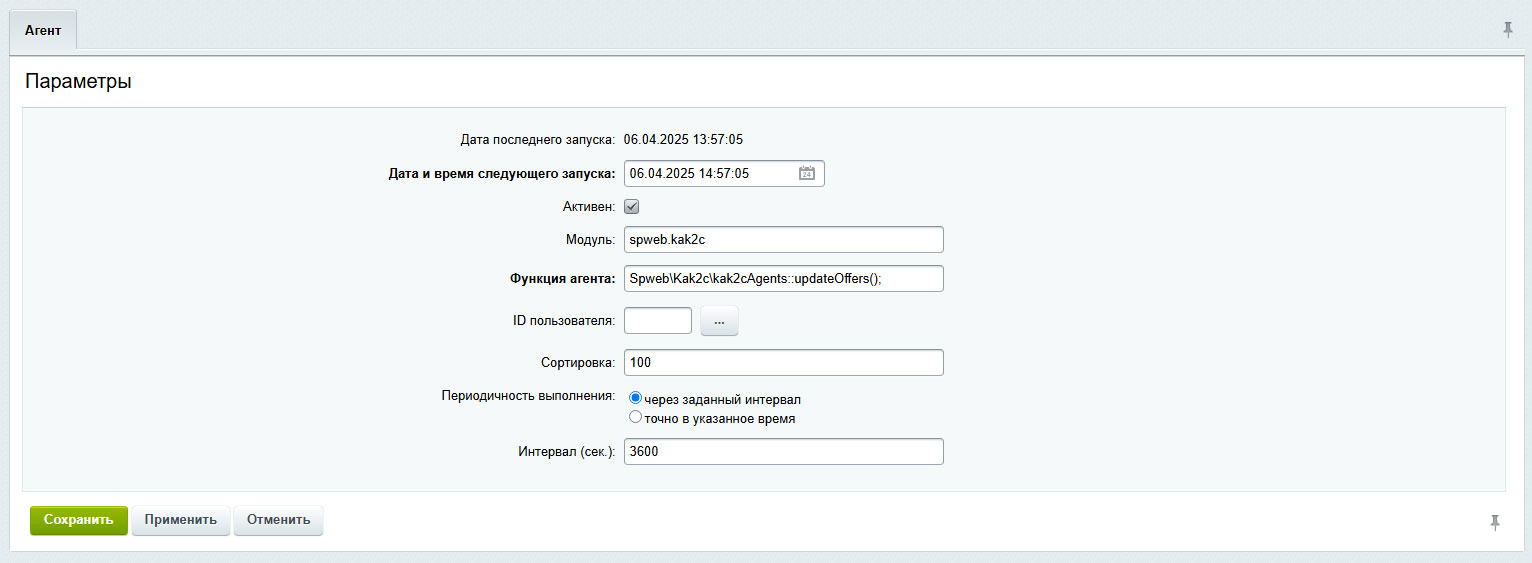 После установки перейдите в Настройки -> Настройки продукта -> Настройка модулей -> Spectre: Интеграция фулфилментa «Кактус» или по адресу «вашсайт»/bitrix/admin/settings.php?lang=ru&mid=spweb.kak2c&mid_menu=1