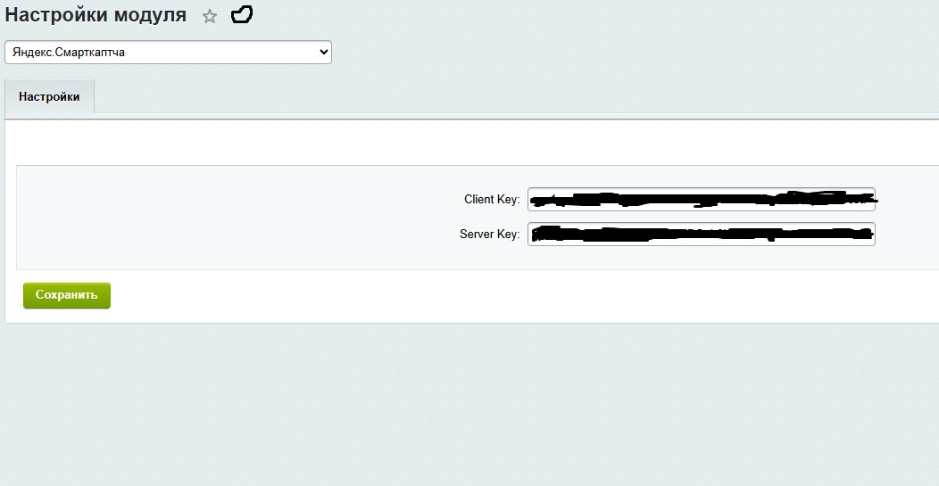 Из настроек нужно внести только данные Client Key и Server Key для вашего сайта.