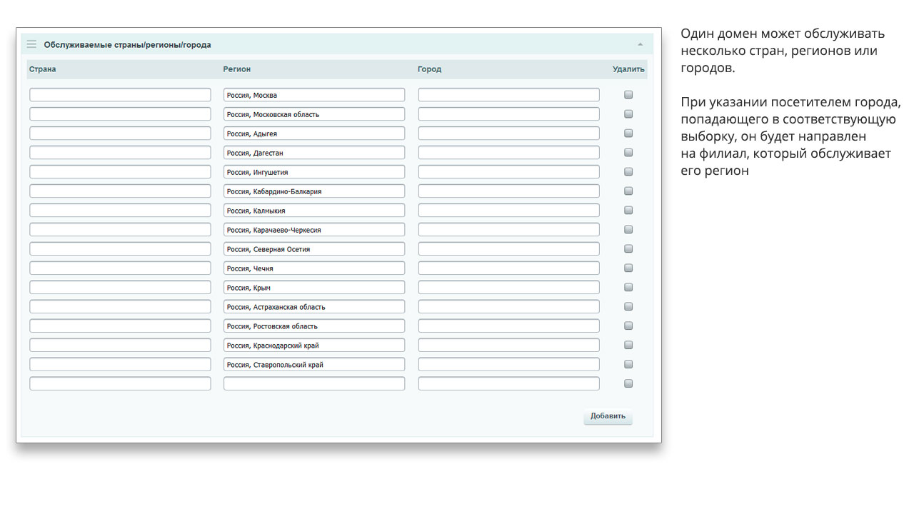 | Неограниченное число доменов/поддоменов | | Мультирегиональность на одном домене и на URL адресах | ||