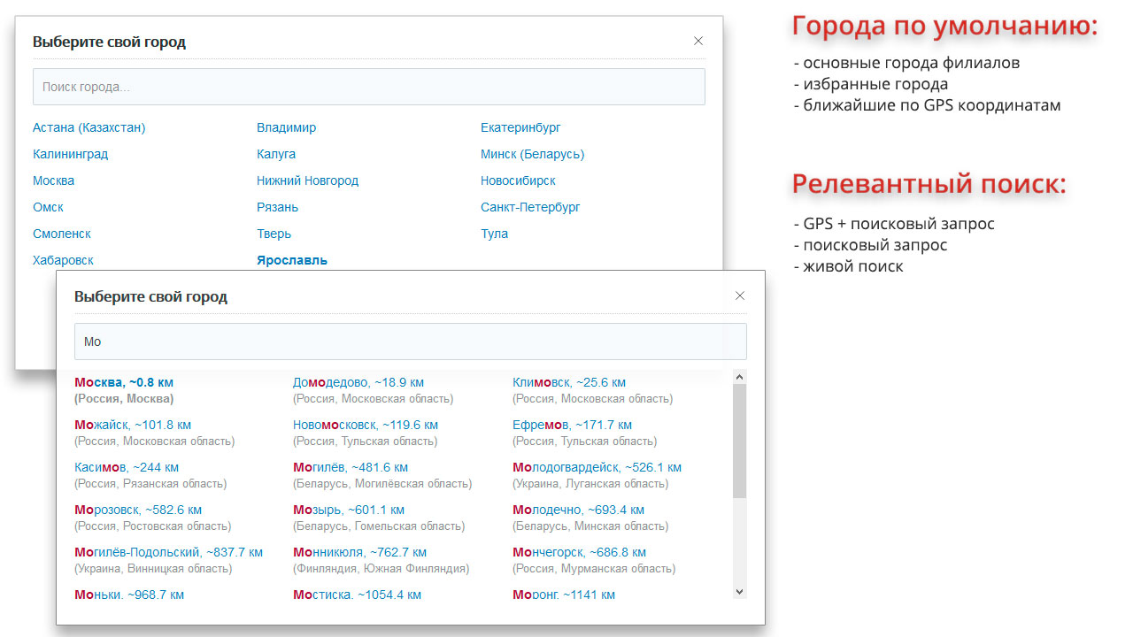 | | Определение и выбор города | | Вывод контента по регионам | |