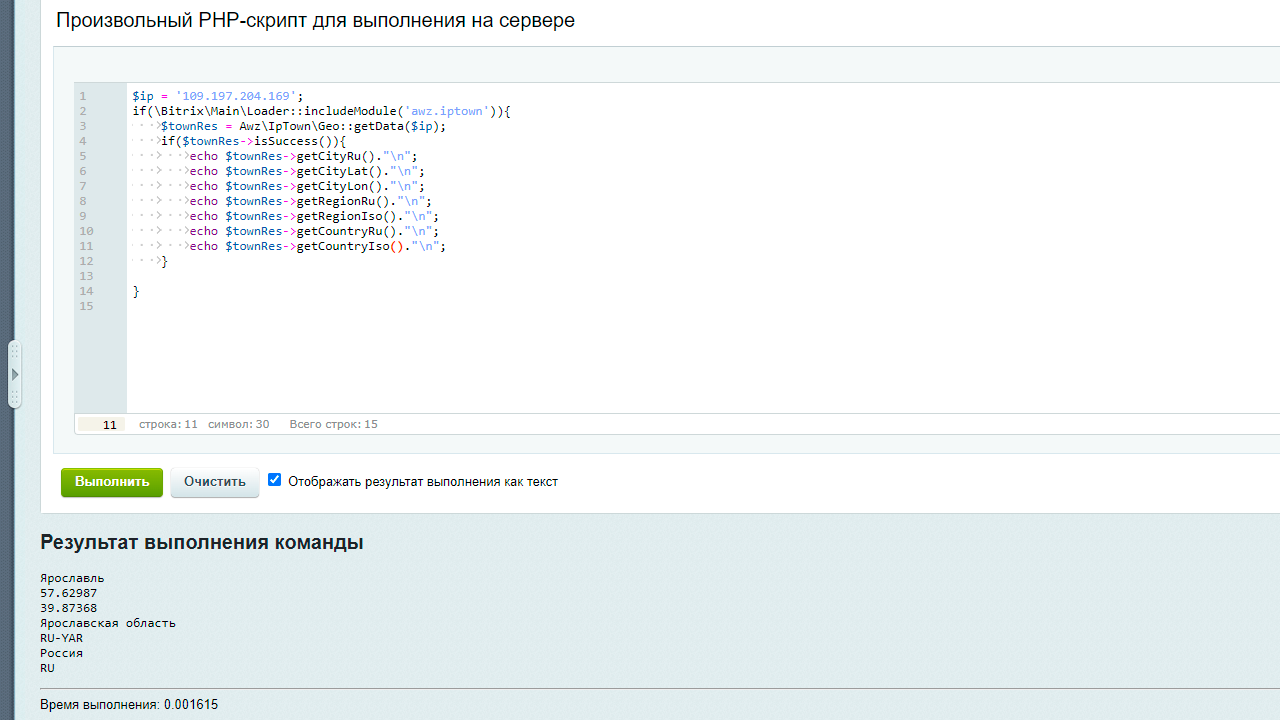 if(\Bitrix\Main\Loader::includeModule('awz.iptown')){