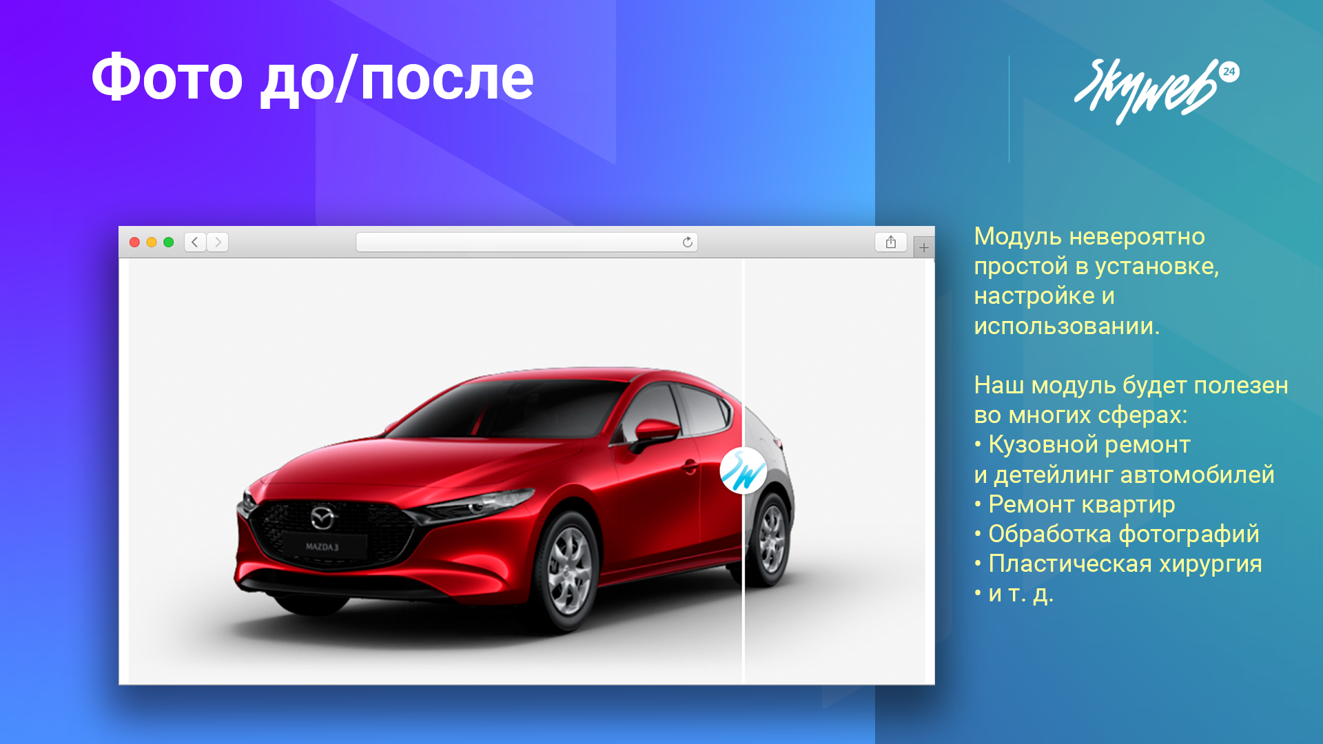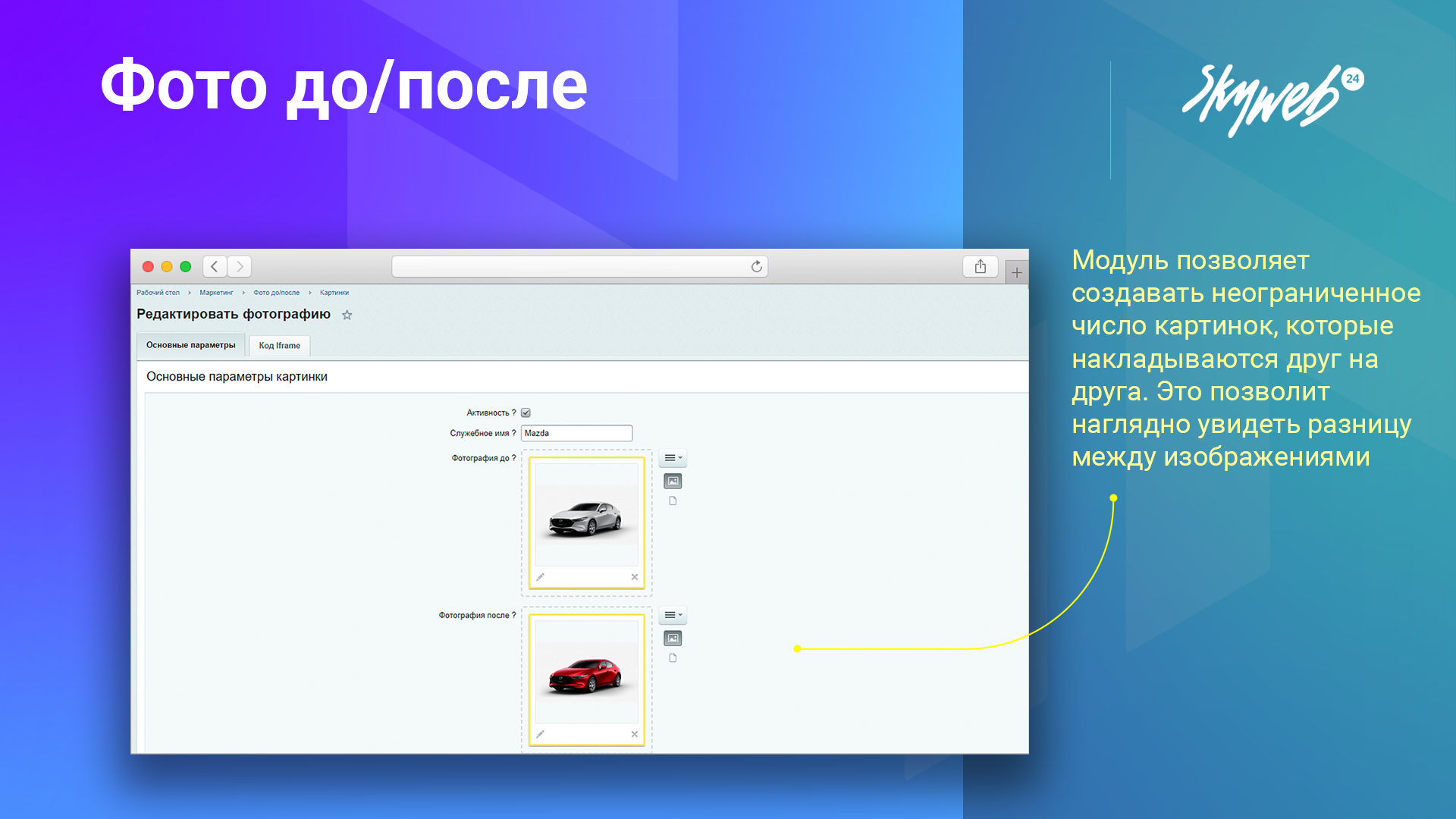 Подробная документация по установке и работе с модулем доступна по адресу - https://skyweb24.ru/documentation/photobeforeafter/