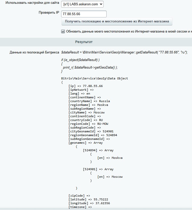 - модуль поддерживает все возможности геолокаций Битрикса, может работать, если включено несколько обработчиков геолокации или только один любой;