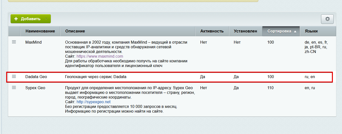 Нажать кнопку "Добавить" и добавить обработчик Dadata Geo.