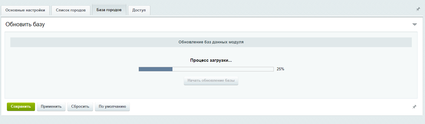 Преимущество локальной базы данных IP-адресов в том, что сайт не зависит от внешних сервисов геопозиционирования, и их функционирование не влияет на работу модуля. Недостаток — эти БД нужно периодически обновлять, для чего в настройках предусмотрен специальный интерфейс.