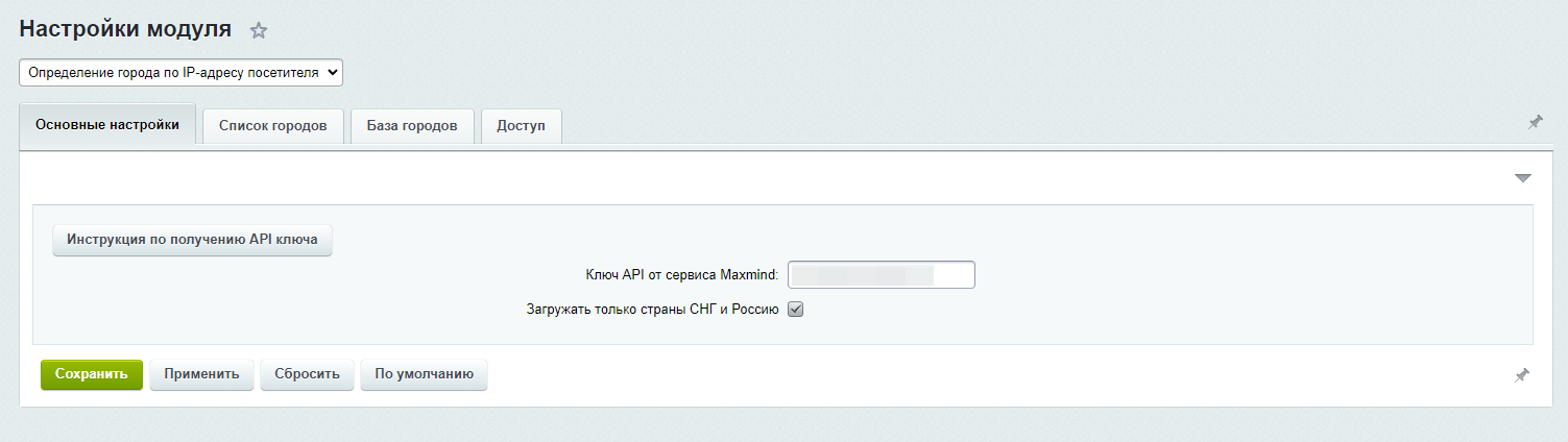 Для корректной работы модуля необходимо будет получить ключ API от сервиса Maxmind. Для этого необходимо:
