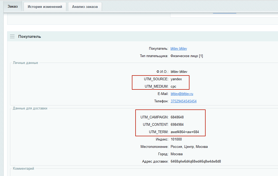 С помощью нашего модуля "Передача UTM меток в заказах" вы или ваш маркетолог сможет отследить точную конверсию платной рекламы с точностью до поискового запроса.