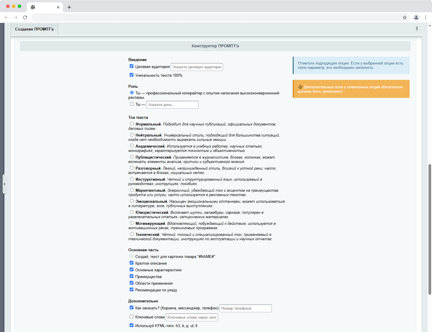 - Конструктор промптов от нейроэкспертов