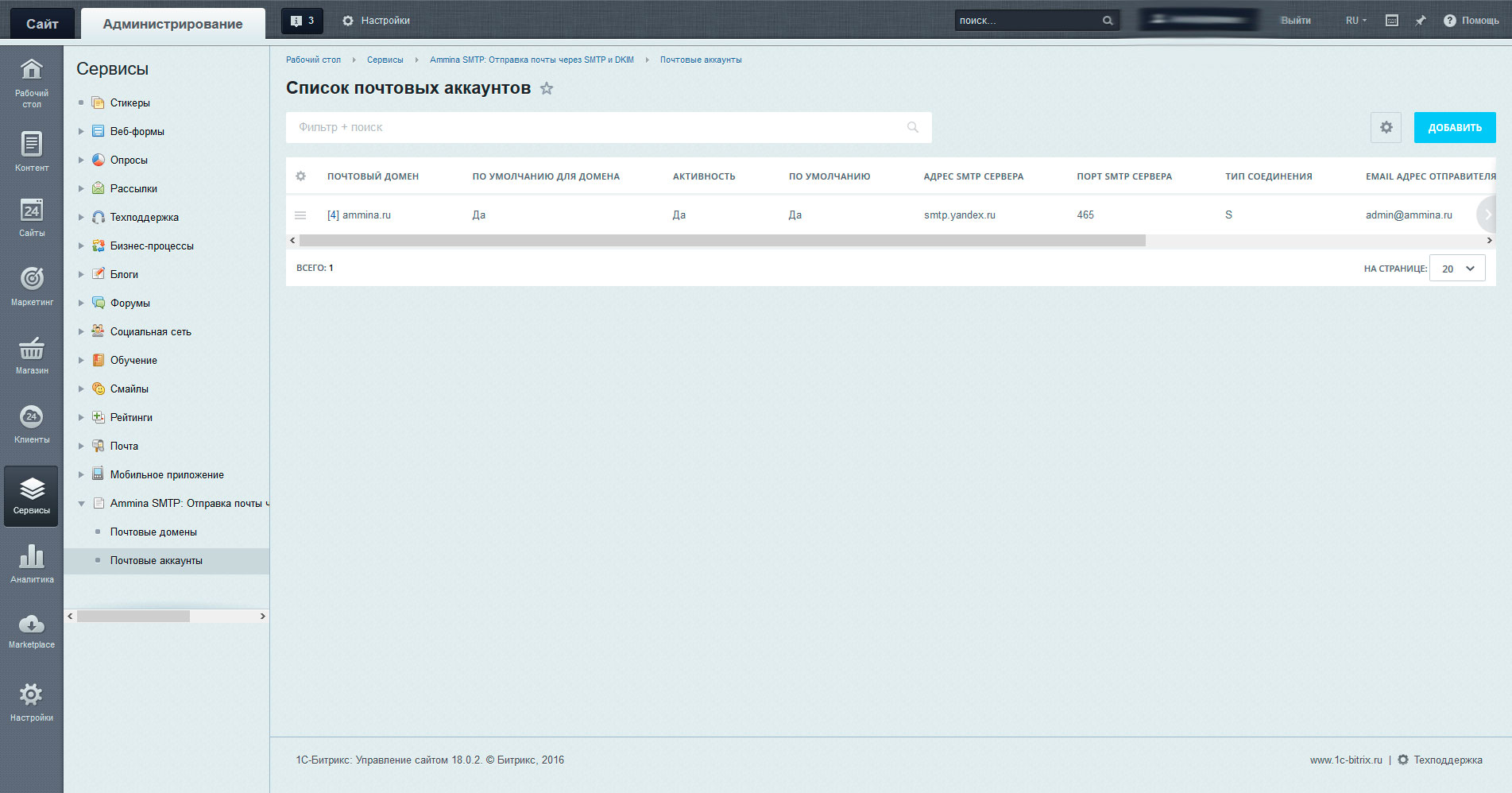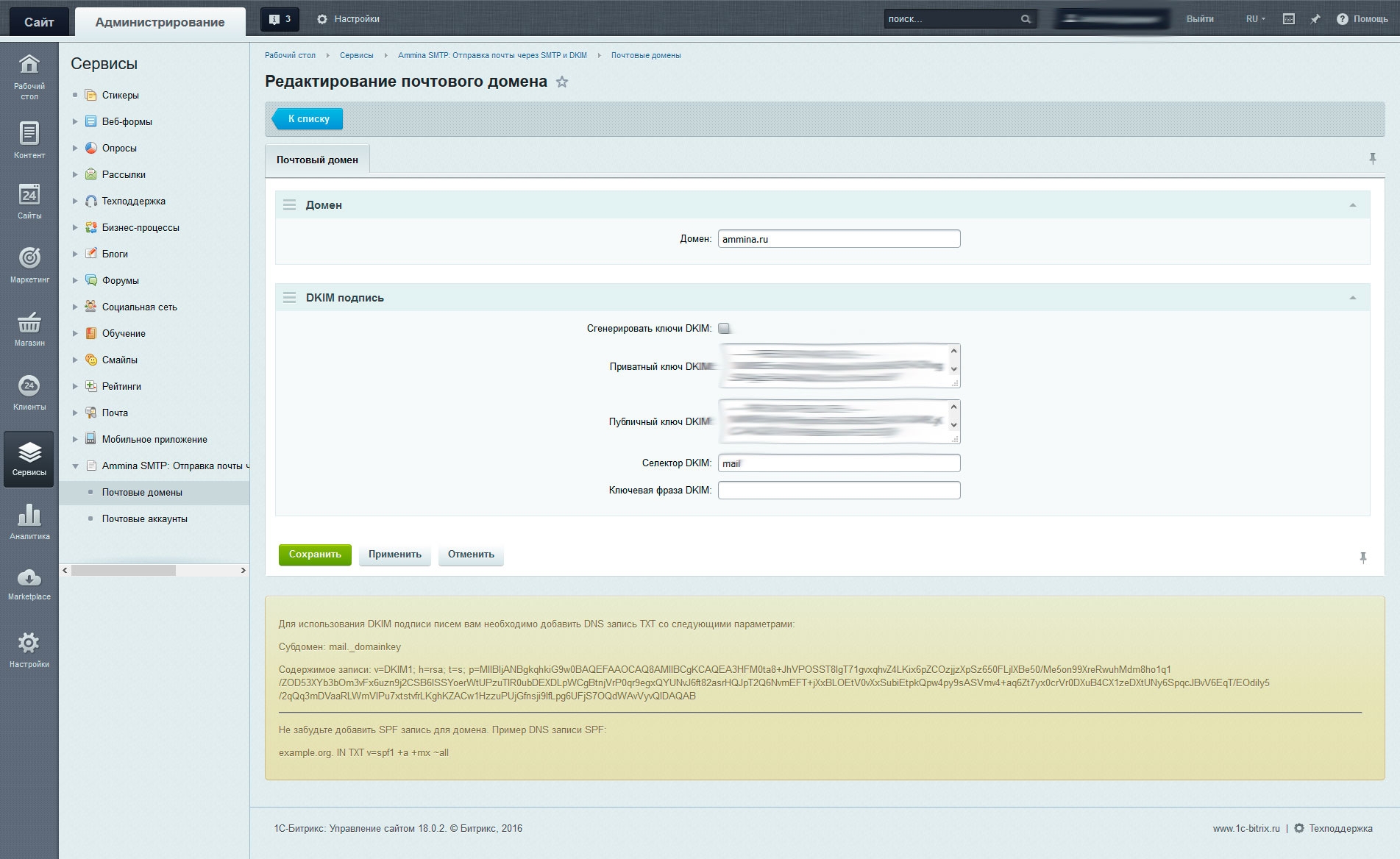 Ammina: Отправка почты через SMTP и DKIM подпись (Битрикс, коробка Битрикс24, Интернет-магазин+CRM)