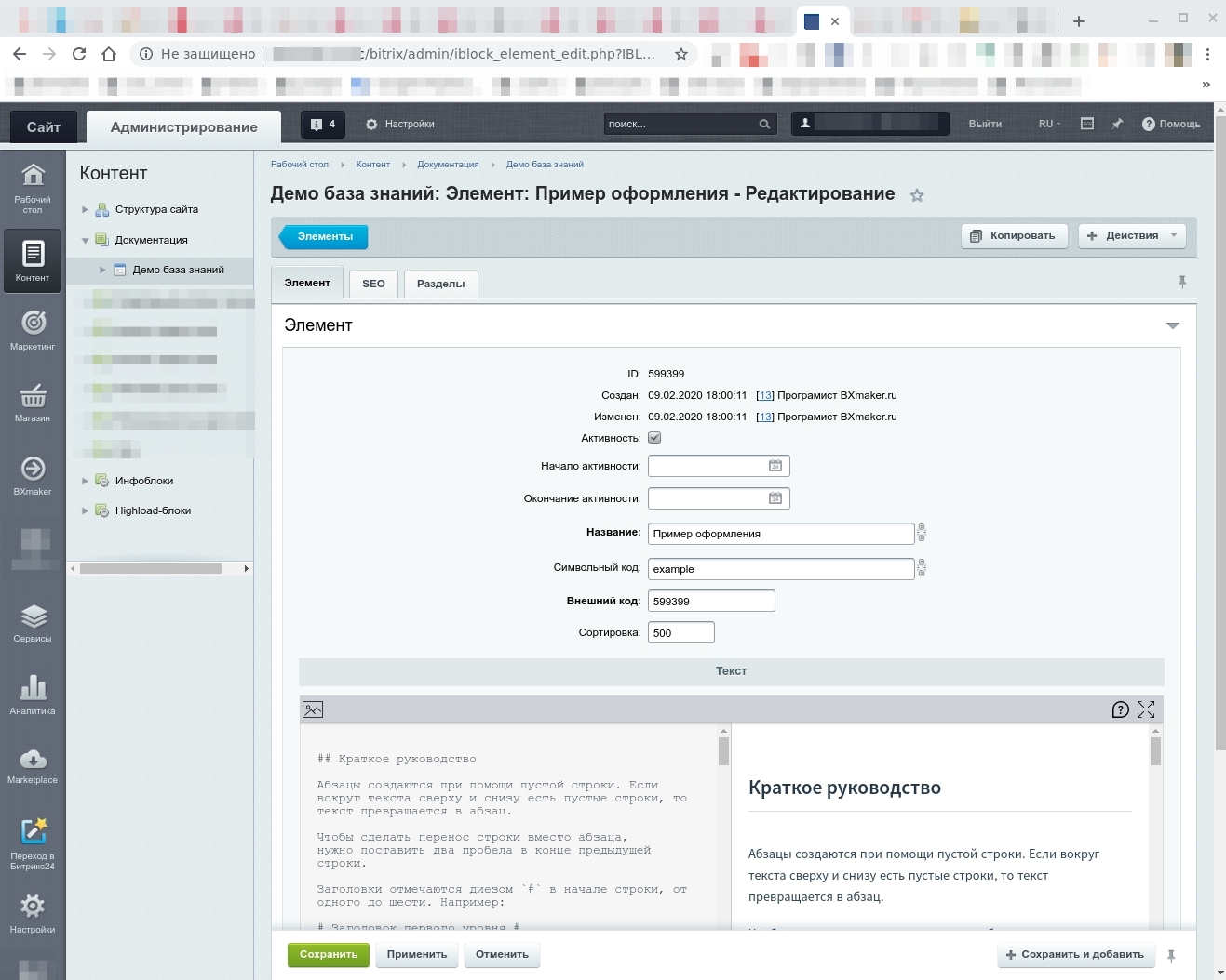 - Установка модуля и демо данных, с созданием раздела на сайте и всего необходимого.