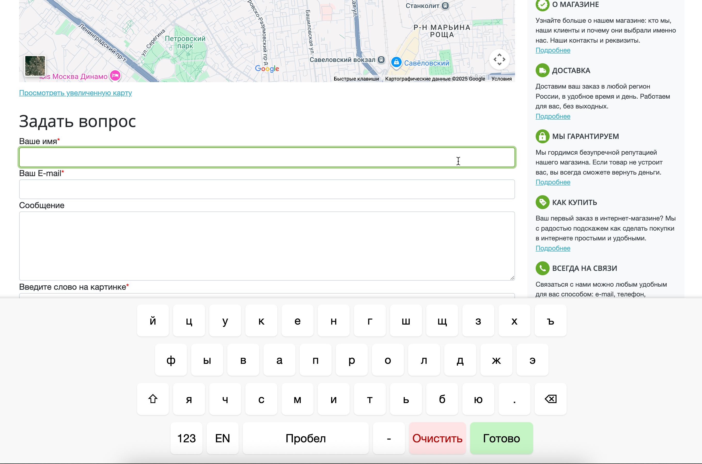 Автоматически появляется при фокусе на поле ввода и обеспечивает удобный ввод данных на любых устройствах.