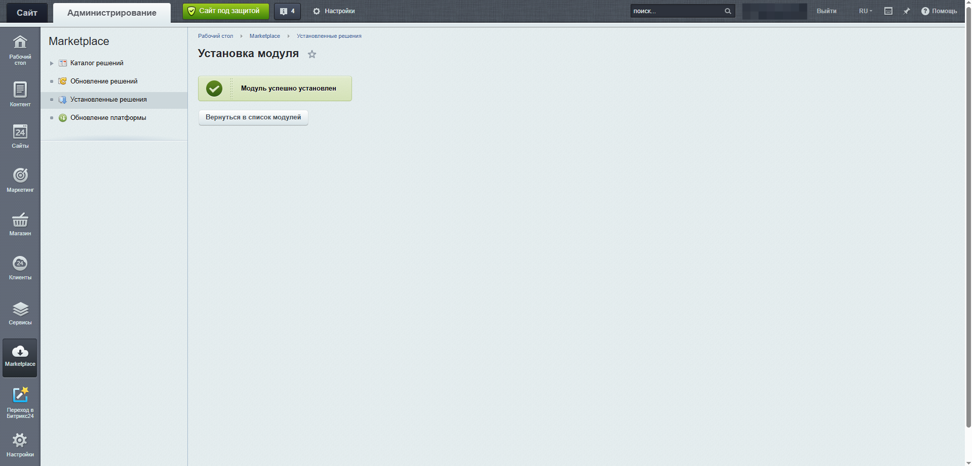- PHP расширения: cUrl.