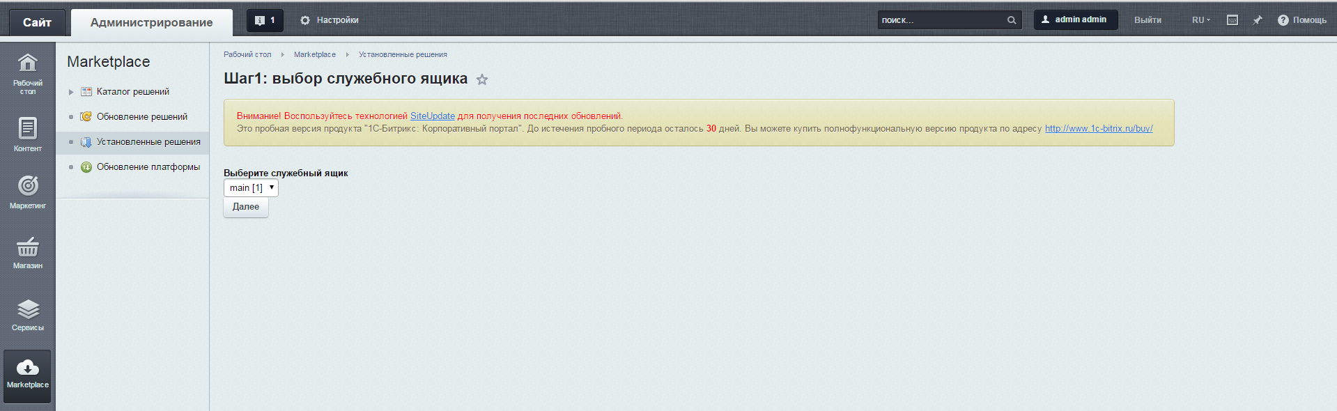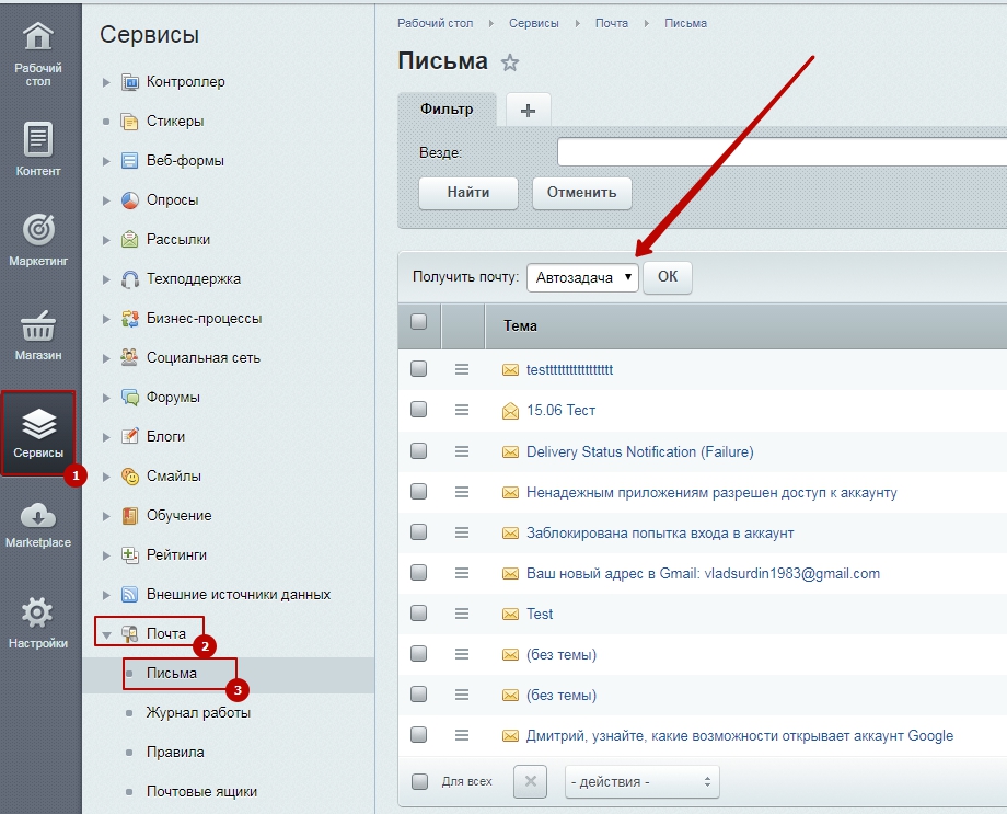 3. Данный служебный почтовый ящик нужно добавить в разделе Сервисы.