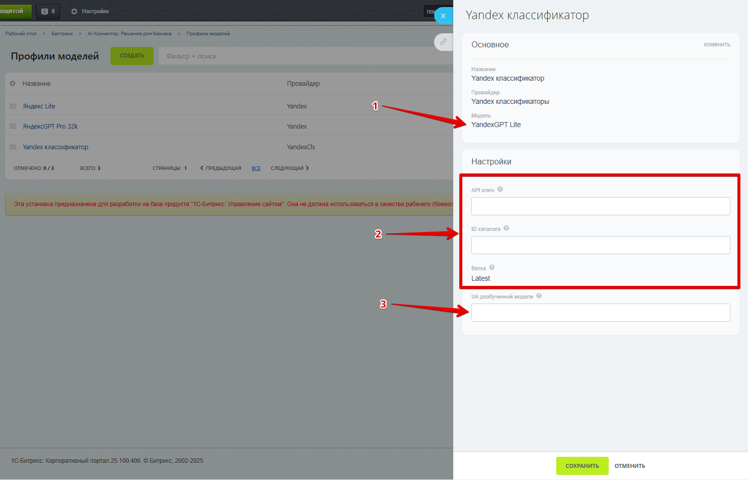 1. Классификатор в данный момент работает только на базе YandexGPT Lite