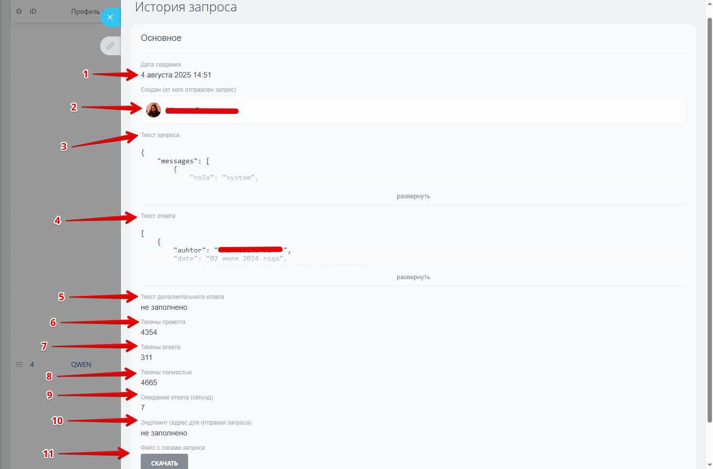 11. Файл с логами запроса. Доступен для скачивания по кнопке
