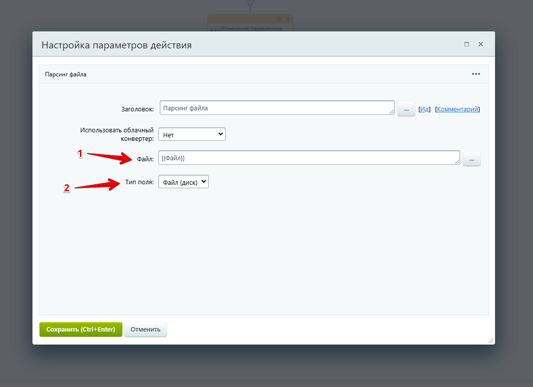 2. Тип поля. На выбор доступны "Файл" и "Файл (диск)"