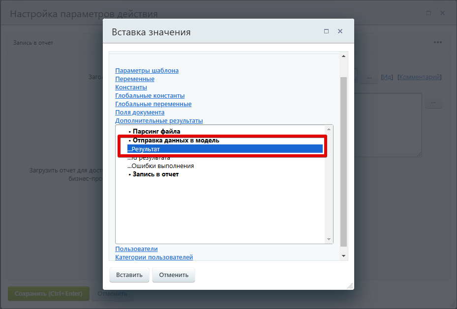 - Отправка данных в модель. Основное активити для взаимодействия с моделями. Позволяет отправлять запросы в модель и сразу же получать ее ответ через штатную вкладку "Дополнительные результаты".