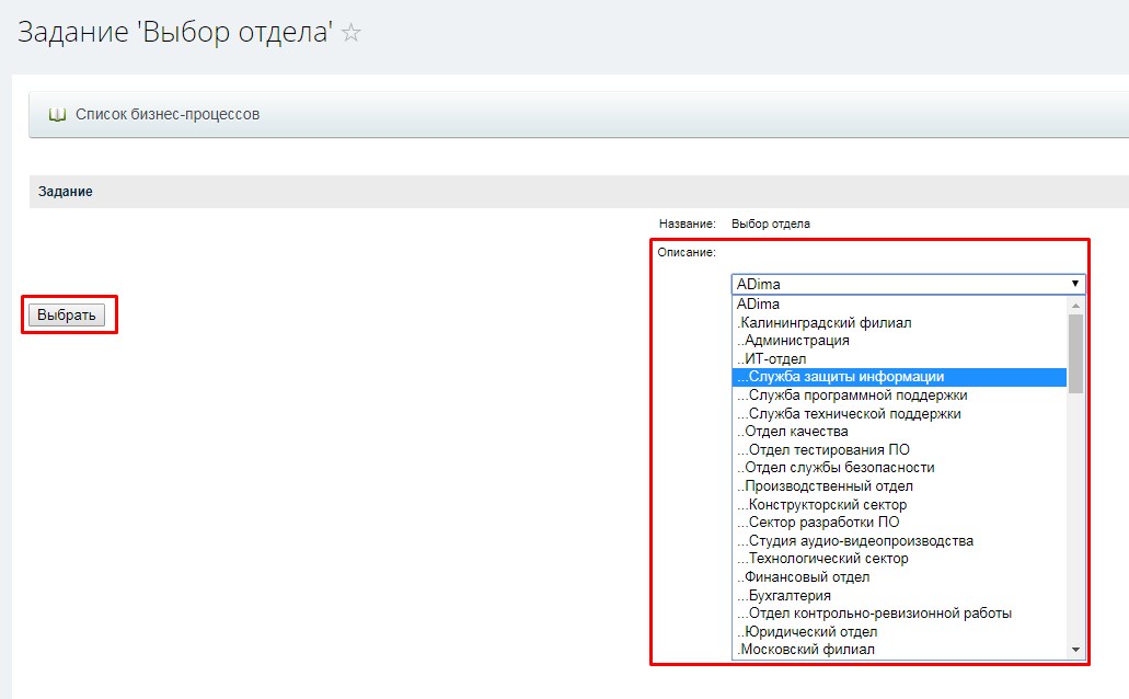 - Заполнение поля «Отдел» для сотрудника обязательно, поэтому данный бизнес-процесс не подходит для создания экстранет-пользователей.