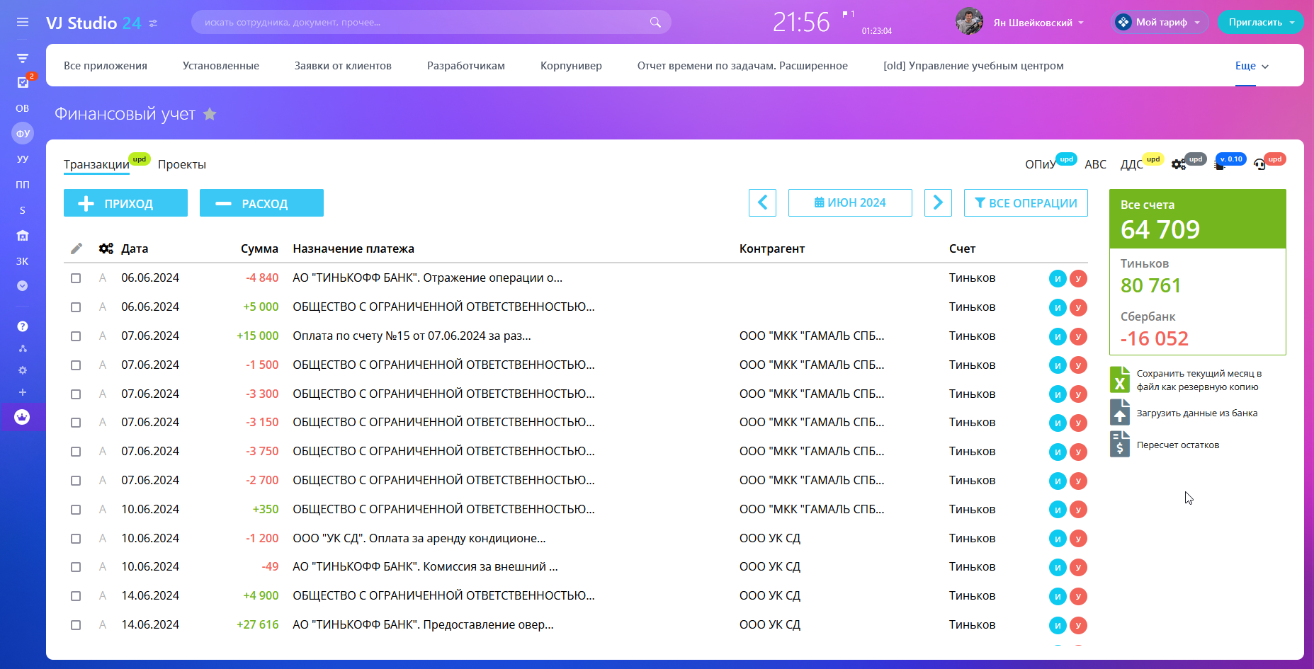 - загружать операции автоматически из банков;