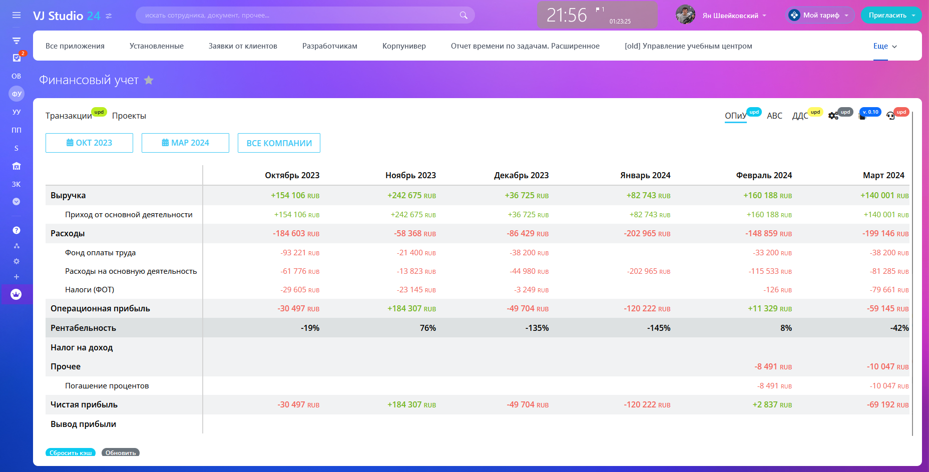 - видеть финансовые показатели в разрезе проектов и в целом по компании;