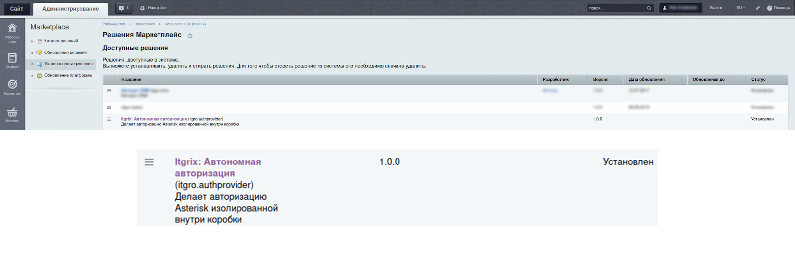 Как выполнить установку модуля «Itgrix: Автономная авторизации»: