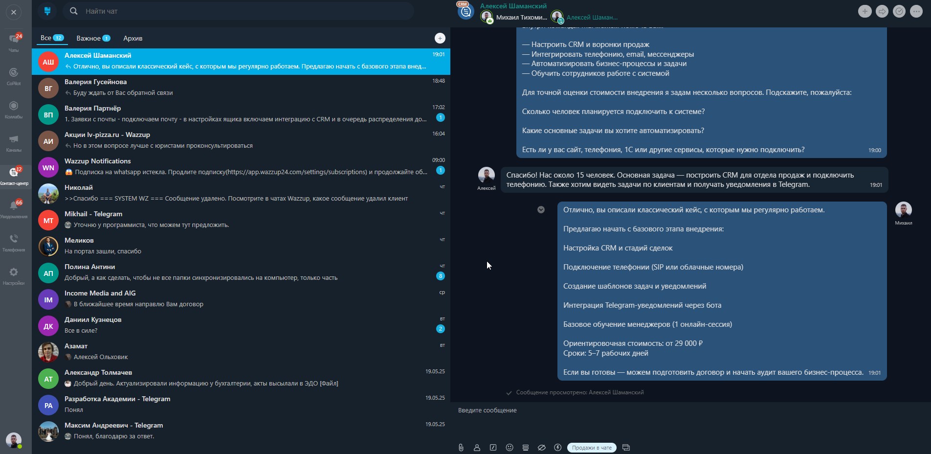 Улучшите работу с чатами и клиентами в Битрикс24! Наш модуль значительно расширяет стандартный функционал открытых линий, позволяя вам эффективнее обрабатывать обращения, систематизировать диалоги и быстрее реагировать на клиентов.