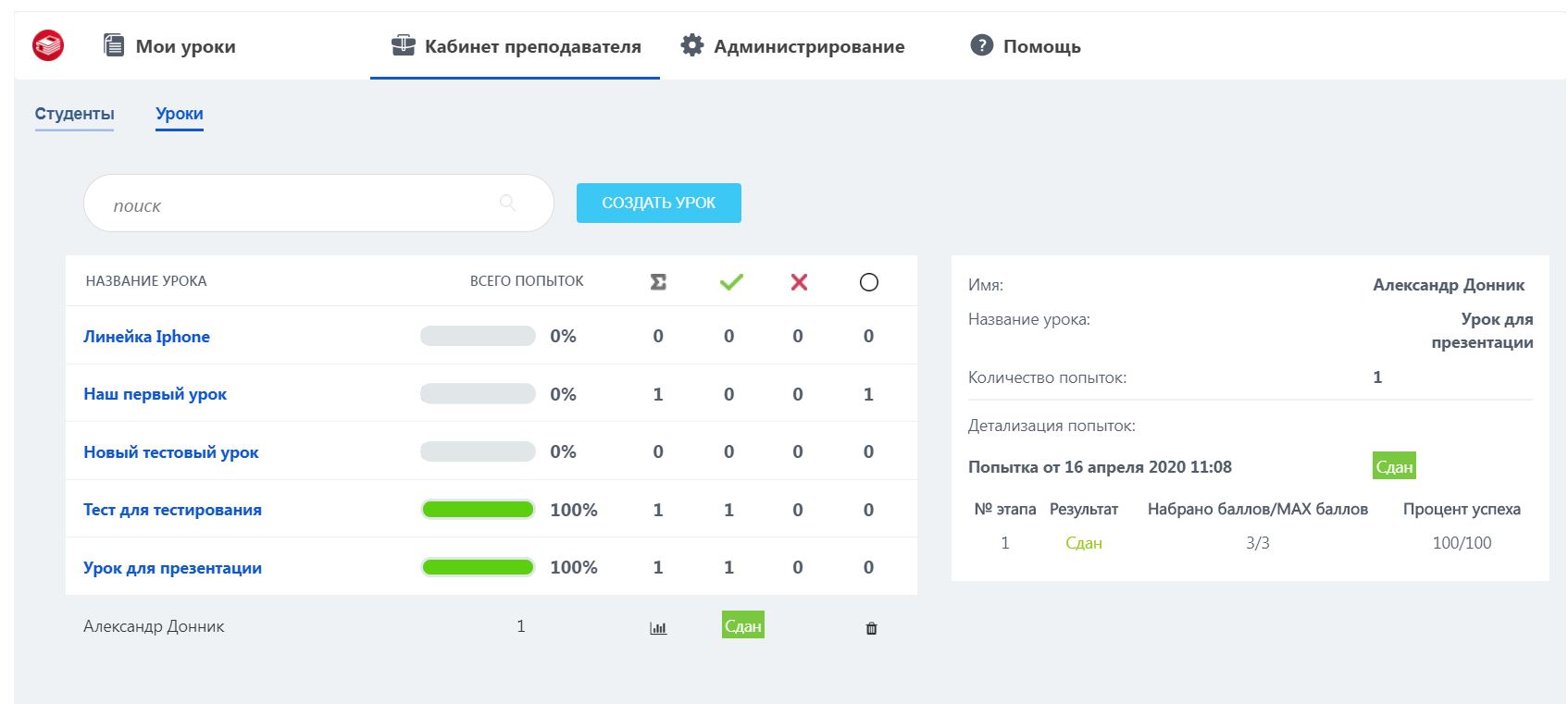 Только преподаватель сможет создать, назначить и проконтролировать статистику по уроку. А кто является преподавателем или студентом, решает администратор системы с помощью простого и интуитивно понятного интерфейса, который позволяет настроить роли доступа к приложению.
