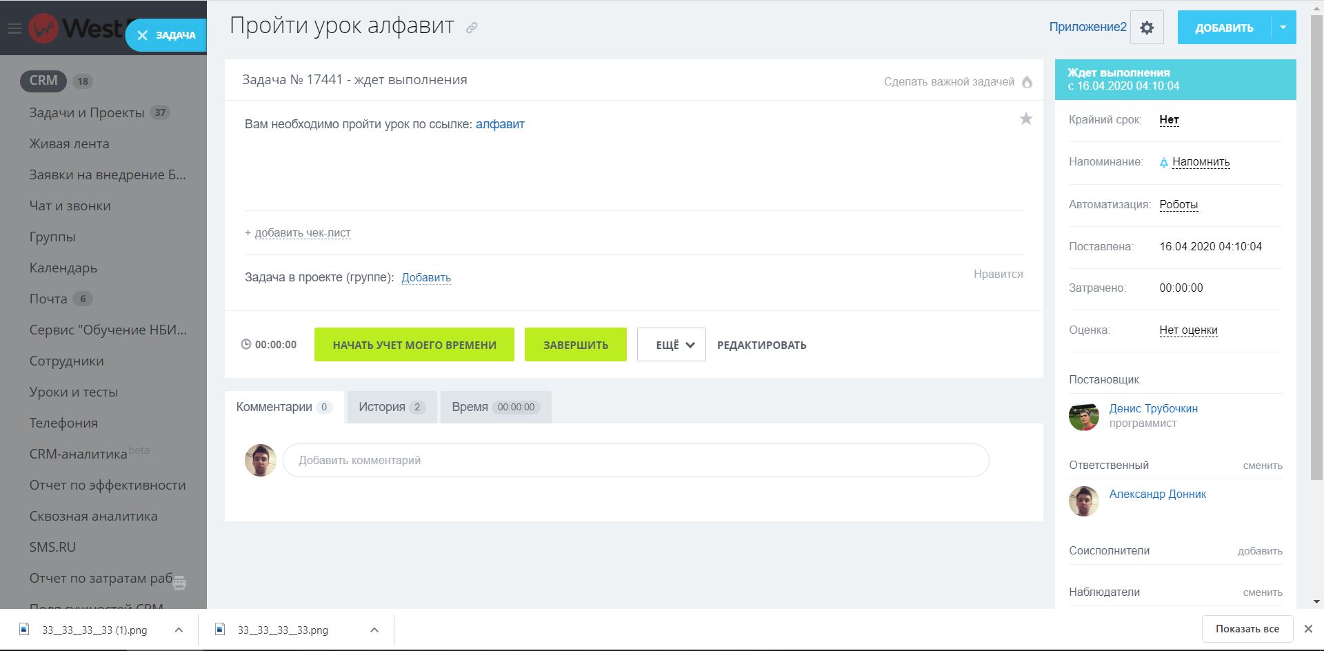 Благодаря удобному интерфейсу, преподаватель может ознакомиться с результатами прохождения курса как по отдельным студентам, так и по урокам. Кроме этого, назначенный сотруднику урок автоматически создаст задачу на портале с возможностью перехода в тело урока.